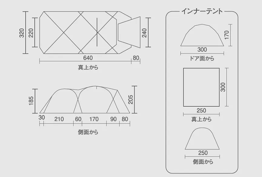 (DX/3025はオールシーズン対応) - 設営時のサイズ
