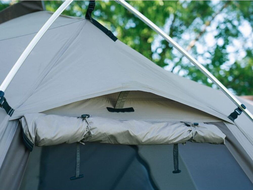 テントにはメッシュパネル(通気性をよくする網戸的な窓)があることで通気性を良くして、テント内が蒸れない・熱くならないようになっています。